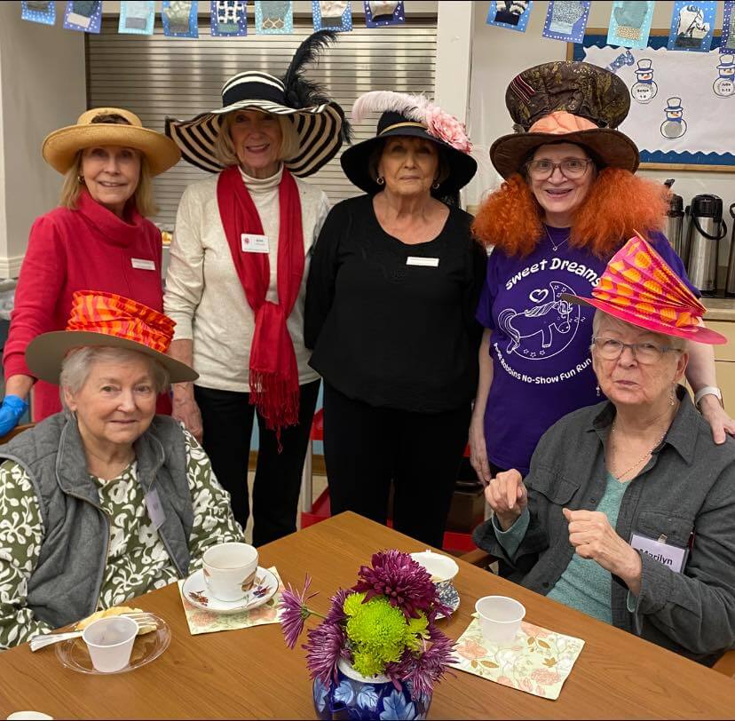 New Neighbors volunteers enjoyed the annual Madhatters Tea at Page Robbins Adult Day Center.